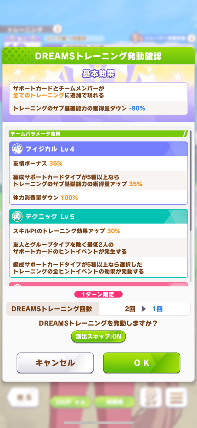 今スタミナ踏んでも夢トレのマイナス補正のせいで根性伸びんからな