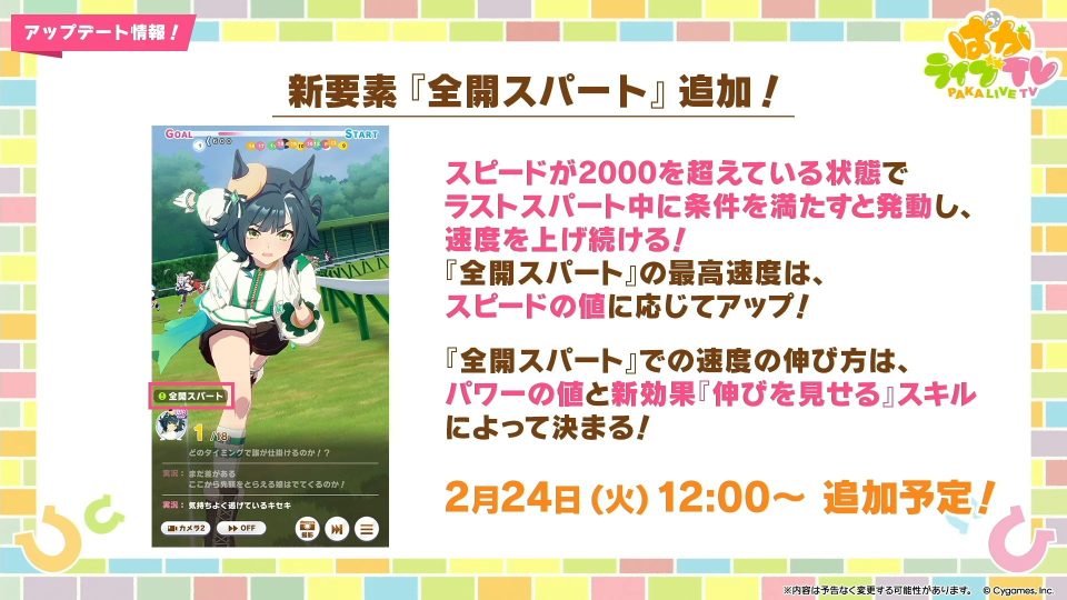 今はゴールしても全開スパートのキャップに到達してないぐらい全開スパート時の加速が足りてないのだ