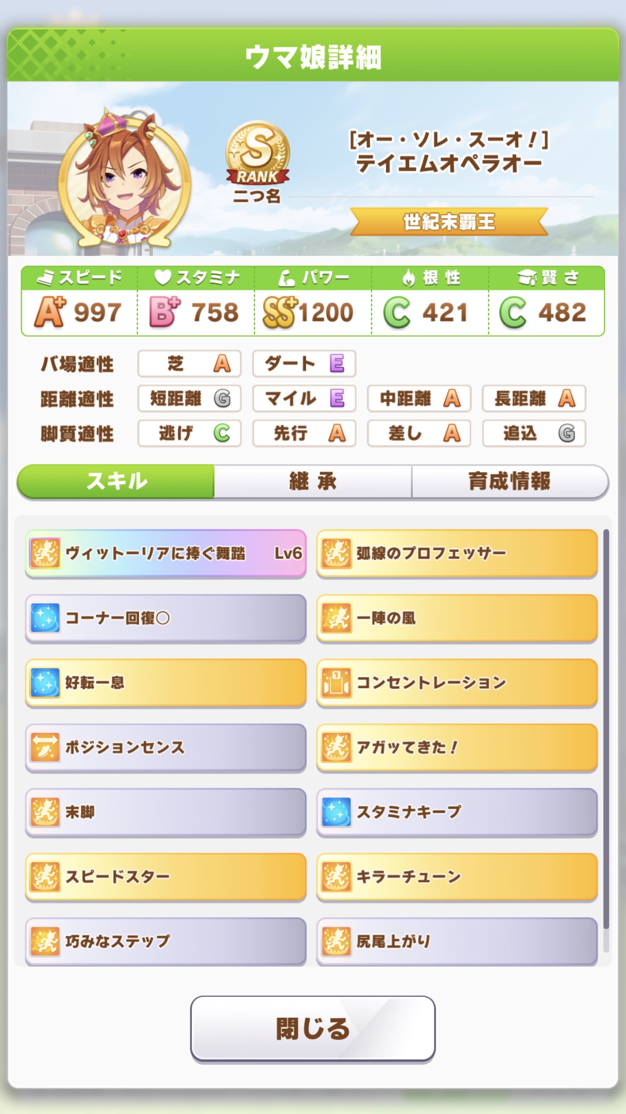 オペラオーはスピード抑えめのほうが固有発動しやすくていいんかね