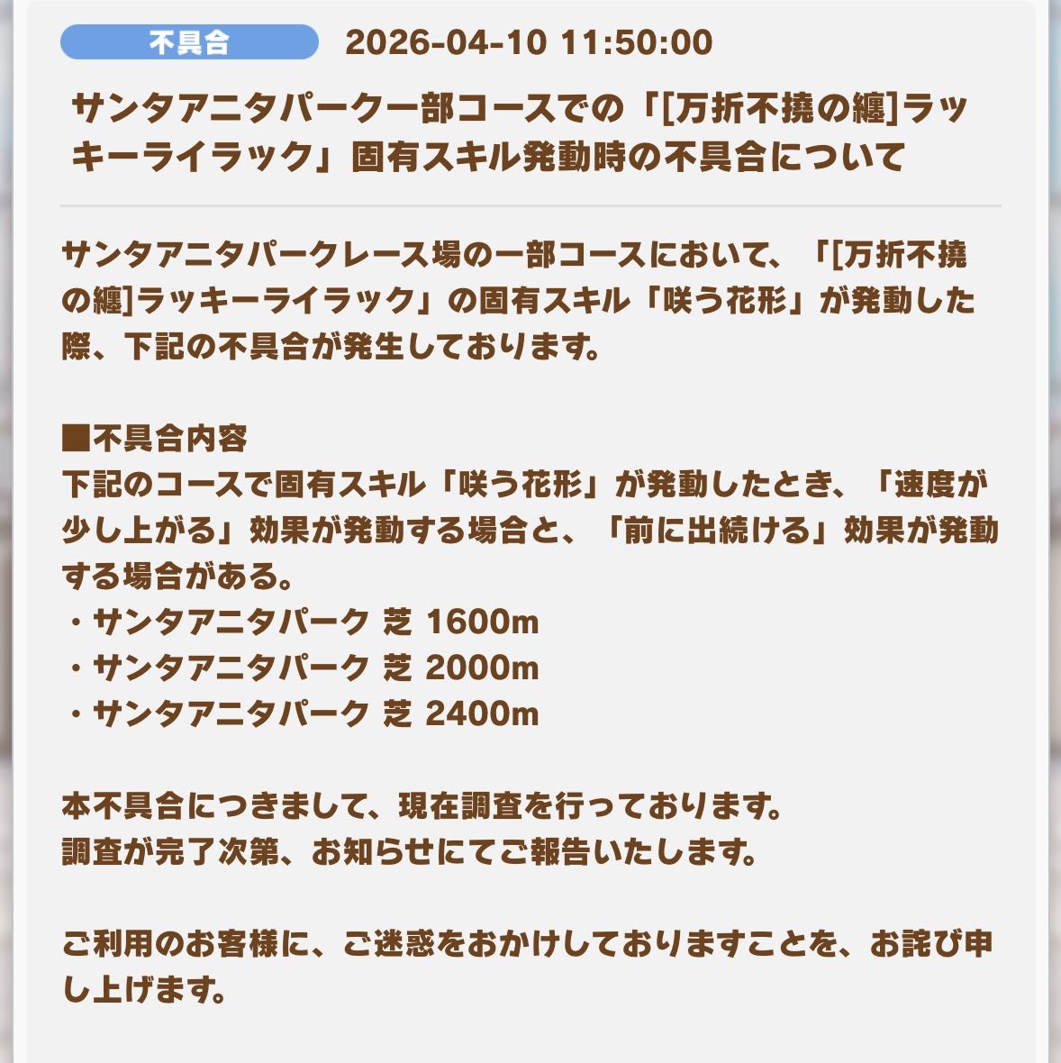 ララ!実装直前なのに固有に不具合が出てるわ!ララ!