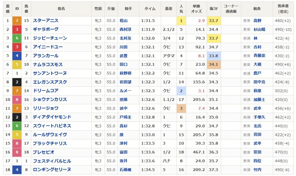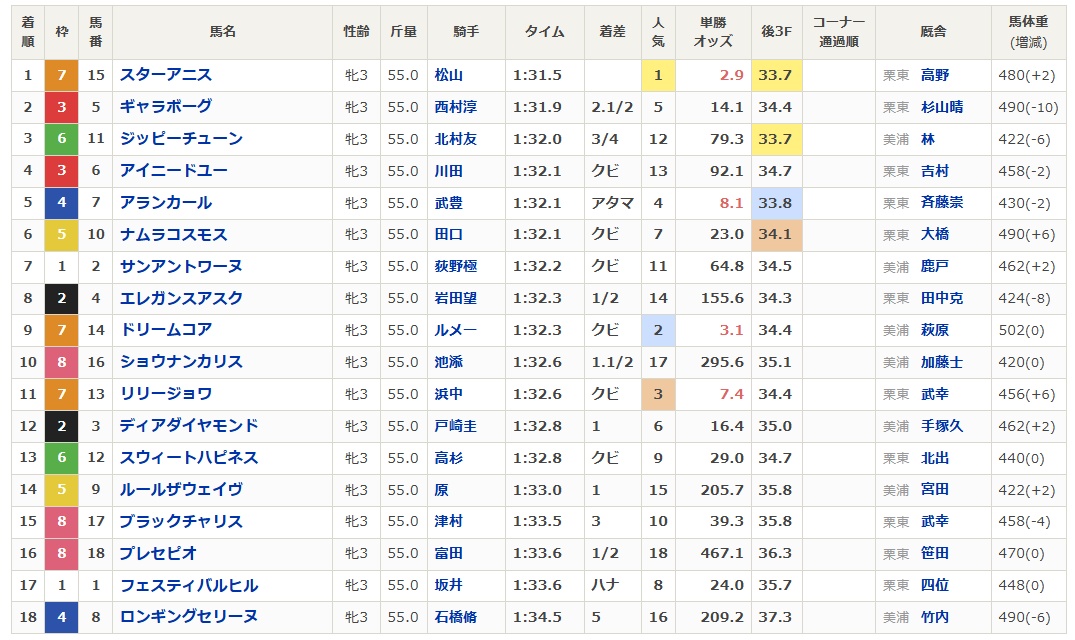 スターアニスが頭2つくらい抜けてるけど、それ以降は9着くらいまで結構競ってるから着順だけ見てたら足元すくわれそう