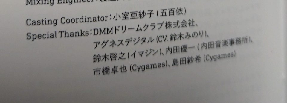 あと何故~かスペシャルサンクスにアグネスデジタル(CV.鈴木みのり)さんがいます