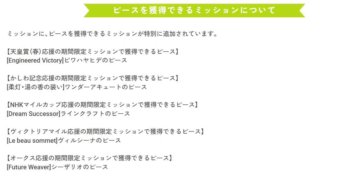 そうじゃなくて春天勝利が無くなってるのとお知らせ見た感じ土日のピースが無くなってその分ミッションで満額貰える用になってるんですよ