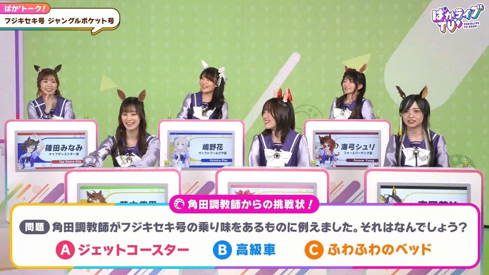 解説もいいけどキャストと上手く組み合わせるにはクイズで全員参加の方がぱかライブ向きやな