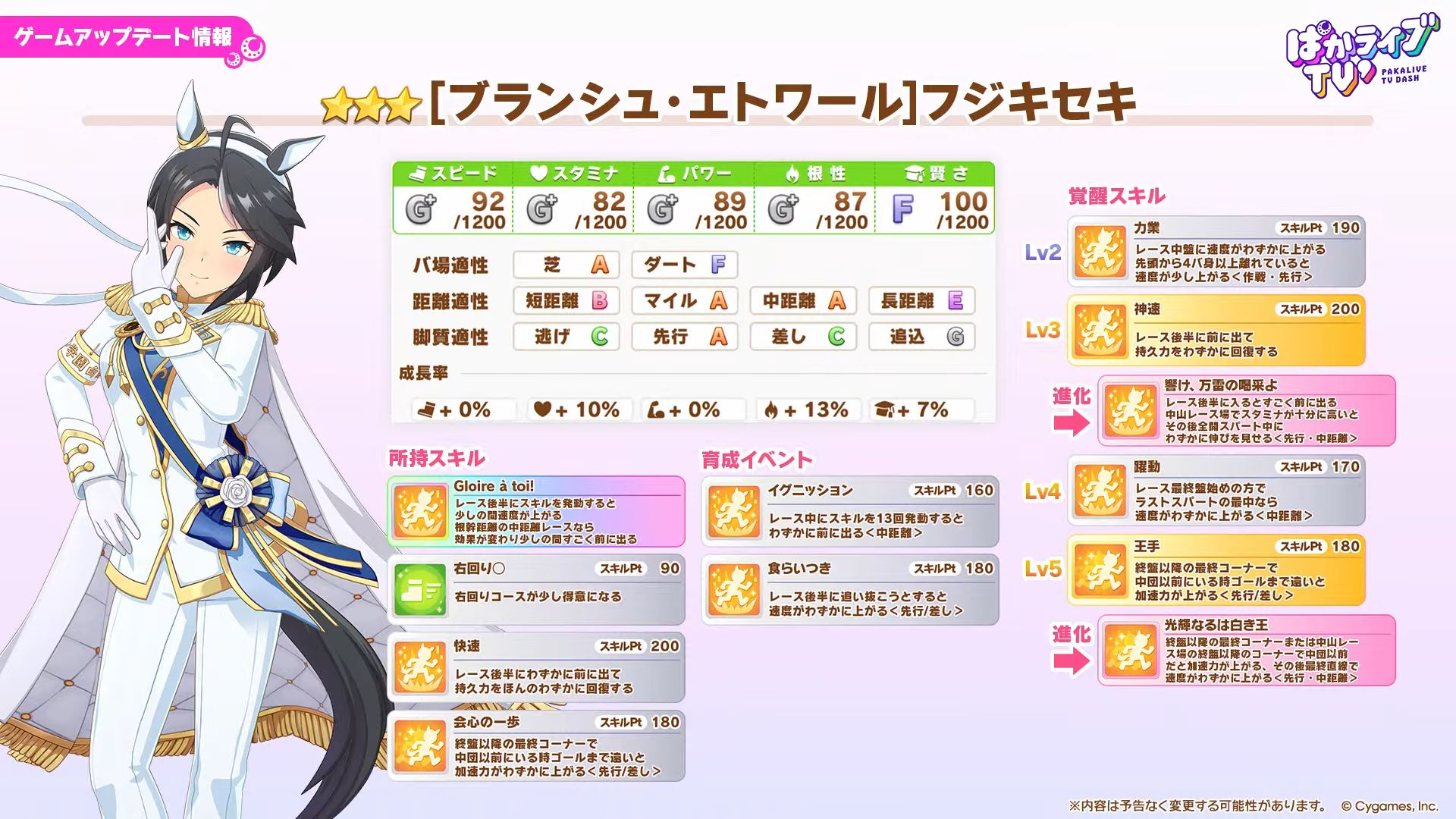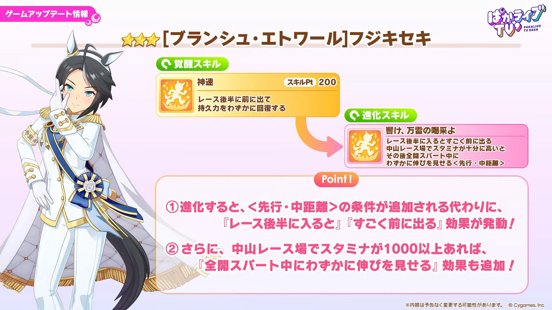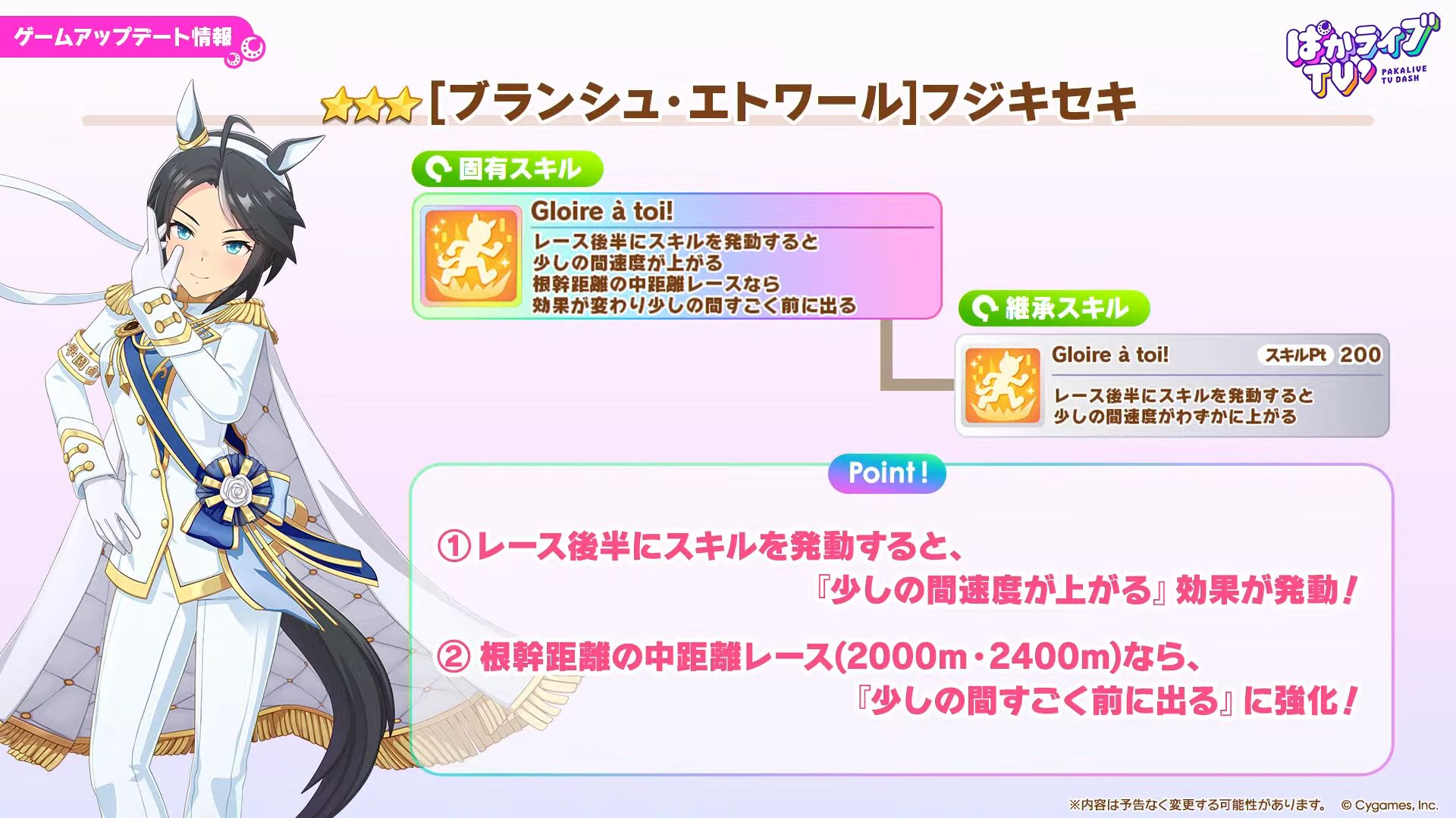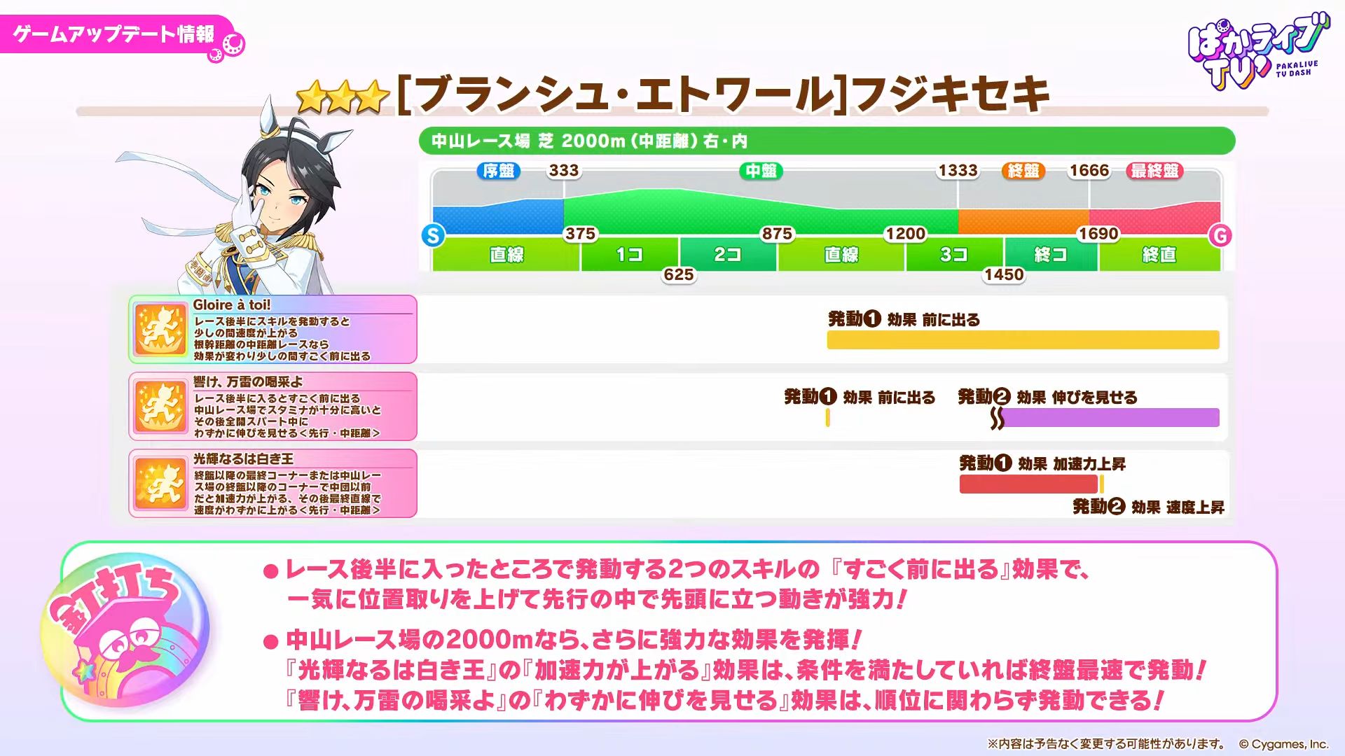 うーんバフは良いとして外付け加速必須なポッケと中距離ですら殆どのコースで最速にならない王手絡みのフジキかぁ