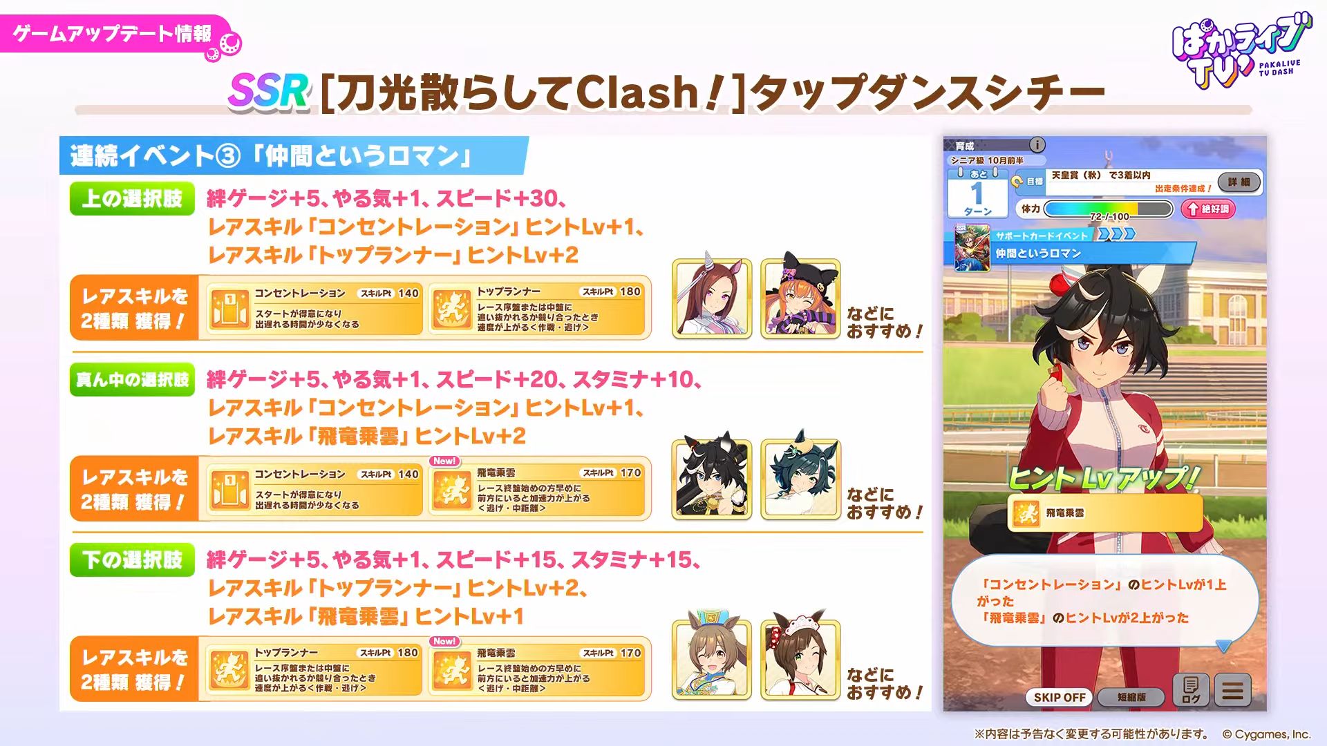 サポカ自体は相変わらず弱いけど単逃げ強化とかでシステムの恩恵だけは圧倒的なんよね