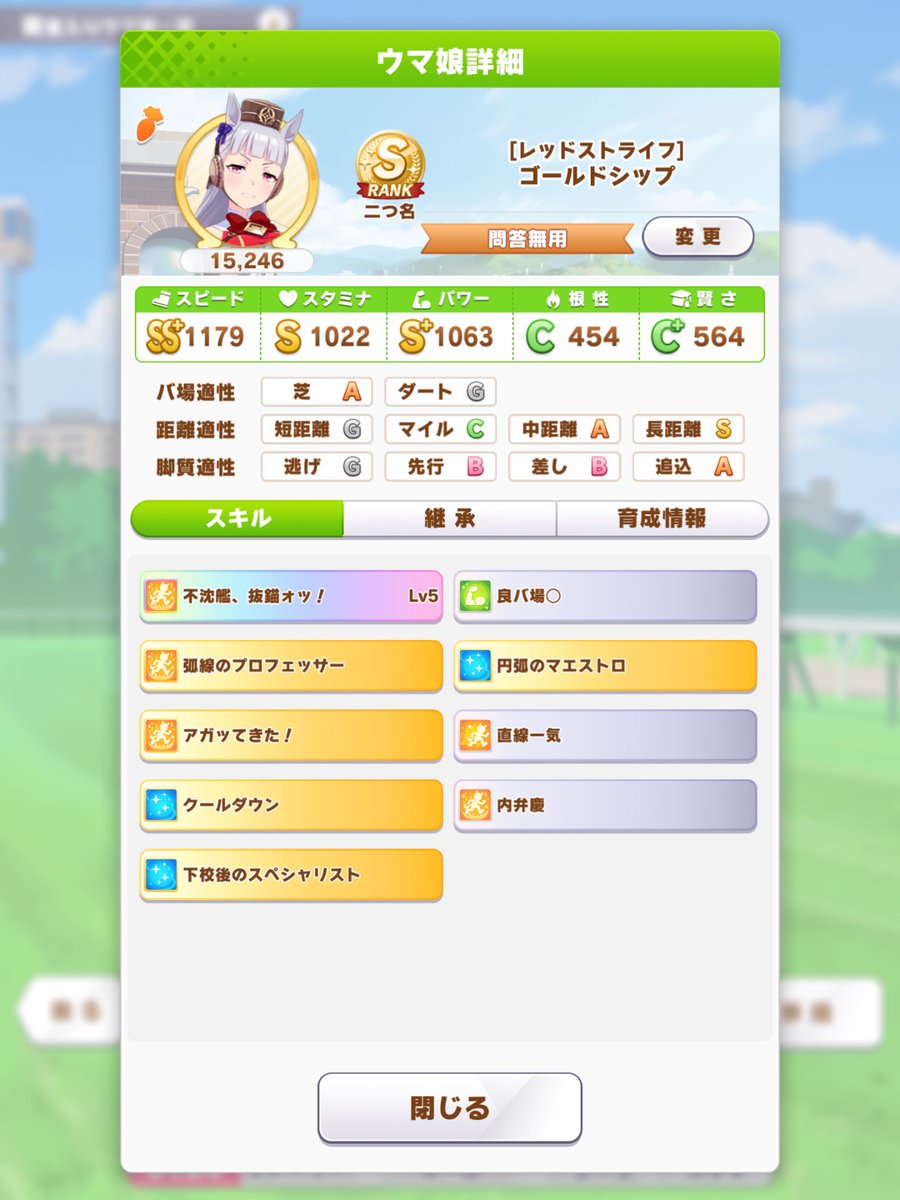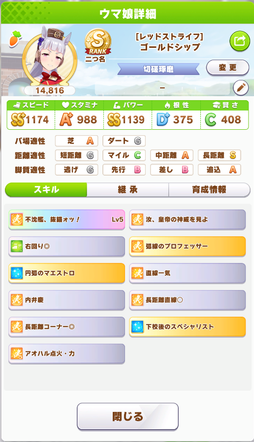 スタミナ過剰のゴルシは作り直すかデバフ対策で採用するか迷うところ