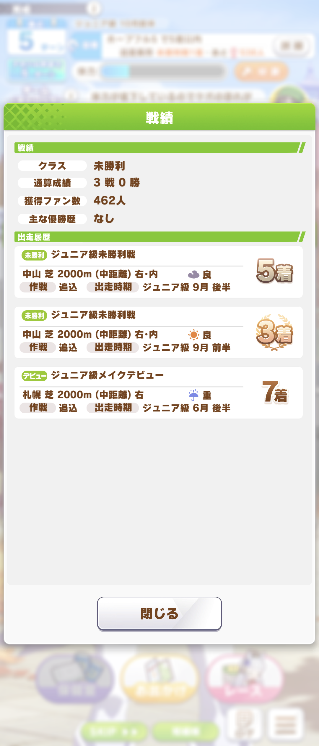 育成レースでは全部圧勝するのに野良レースでボロ負けしまくるやつ