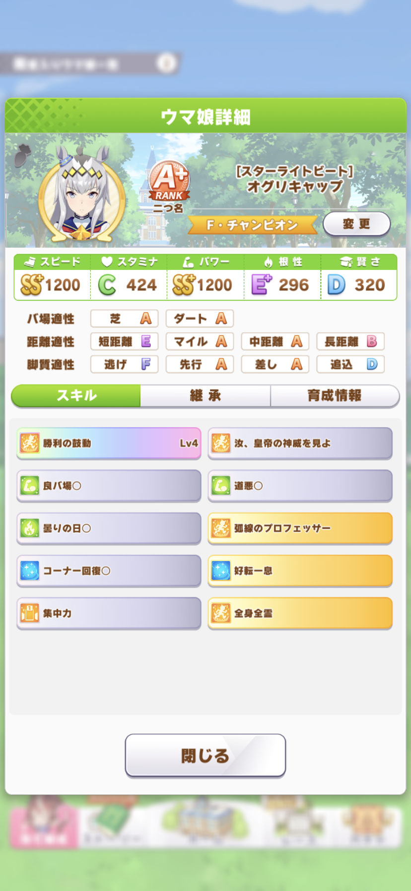 スピード・スタミナ・根性のバランスが悪いとAやA+だろうと勝てないのは面白いよな