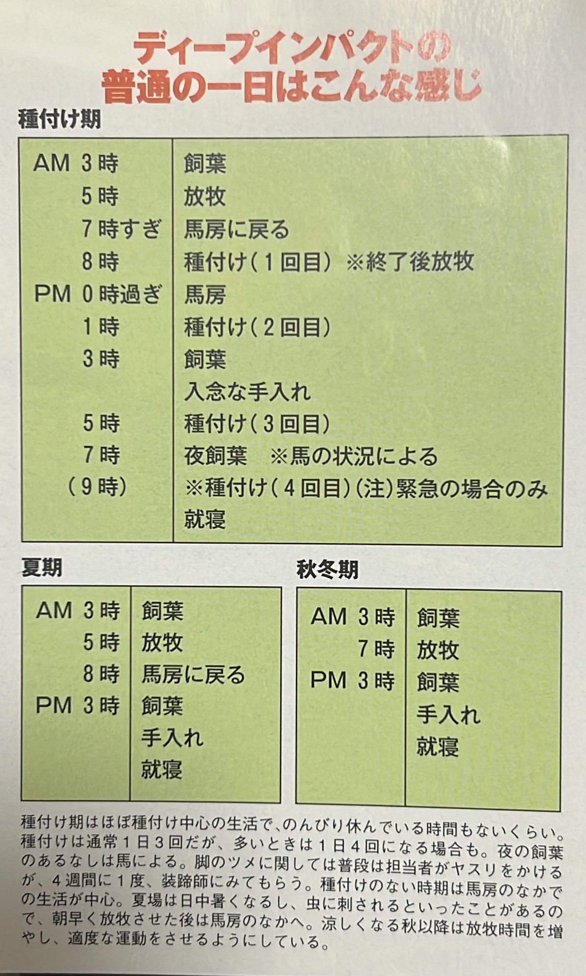 就寝時間削られてんじゃんそりゃ人気種牡馬の寿命短くなるわけやわ