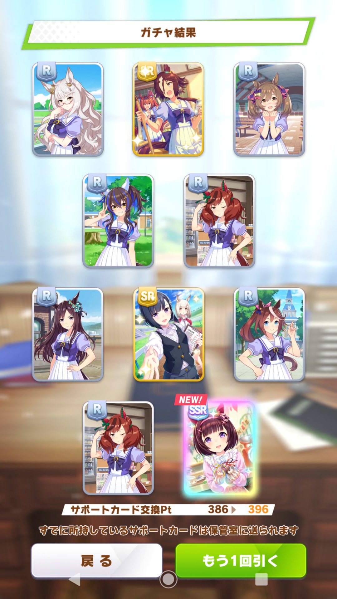 ライアン、ウンス(凸済)、カフェ、カワカミ、バクシン、ニシノ、ヘリオスのSSRの数も下振れや