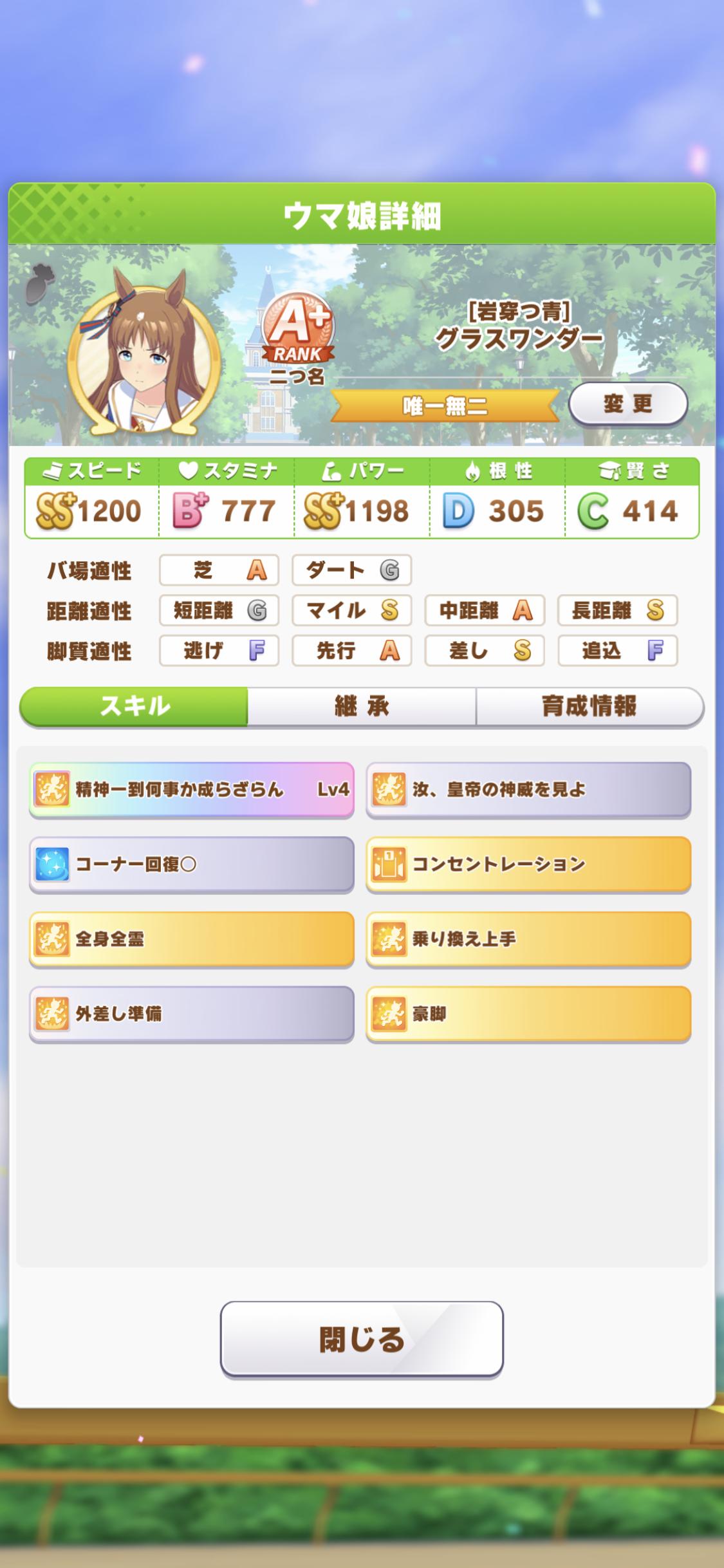 マイルだとマルゼン固有は本人よりグラスの方が上手く使えるのか