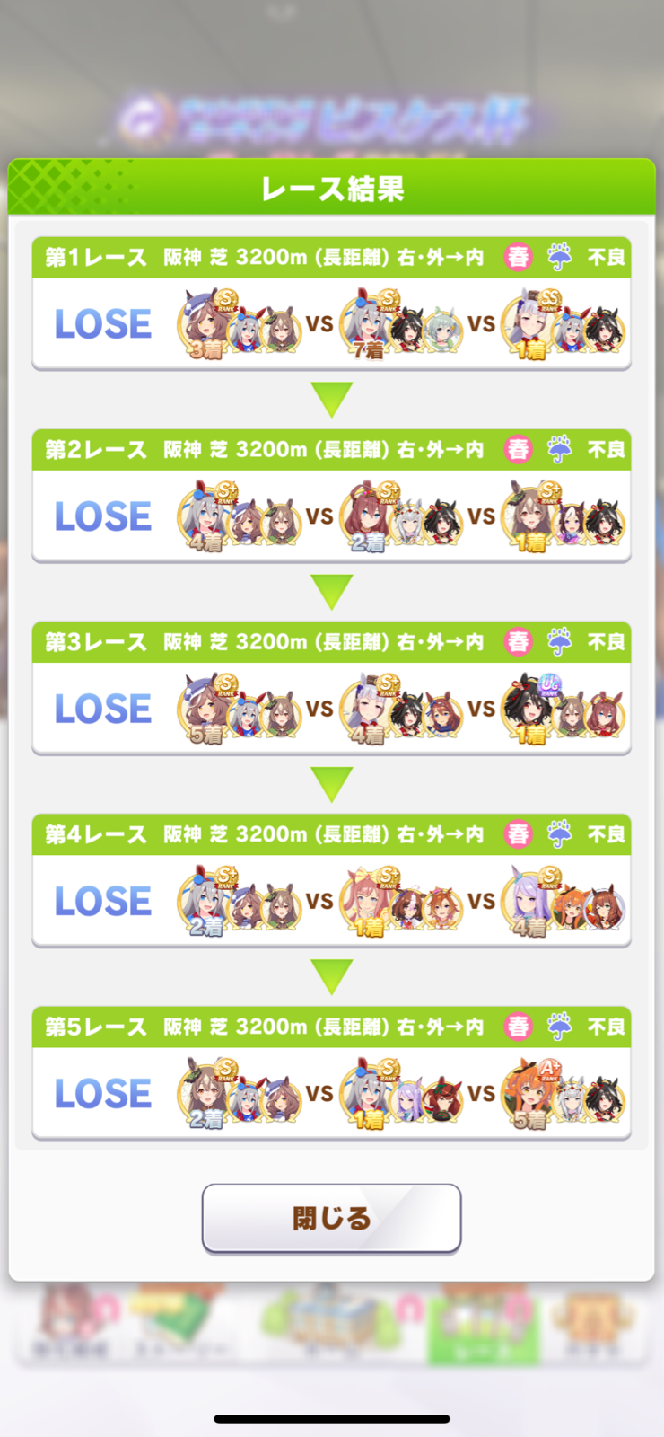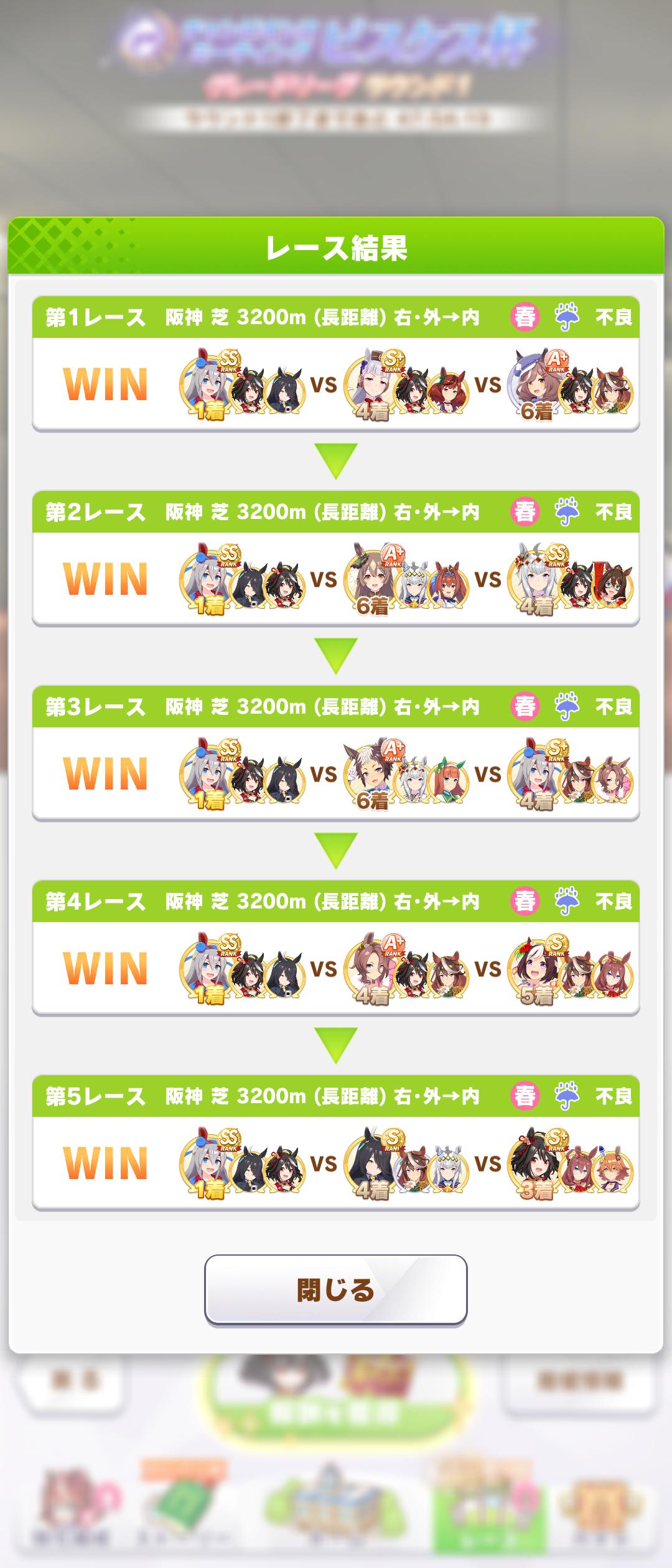 でも、そろそろチャンミもレース結果まで飛ばせるようにしてほしい。
