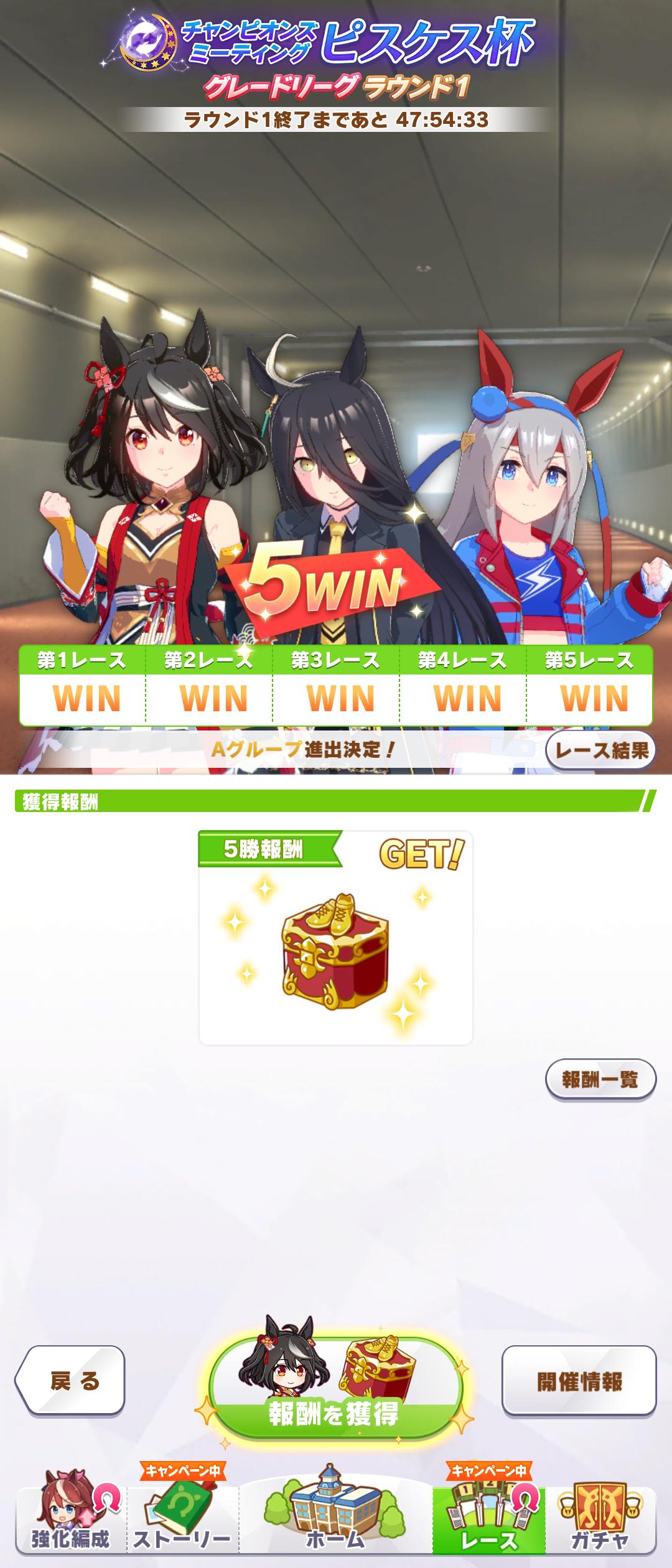 • チャンミ用育成なんて全く気にせず作ったS3人でグレードリーグのAグループ進出を既に決めたんだけど