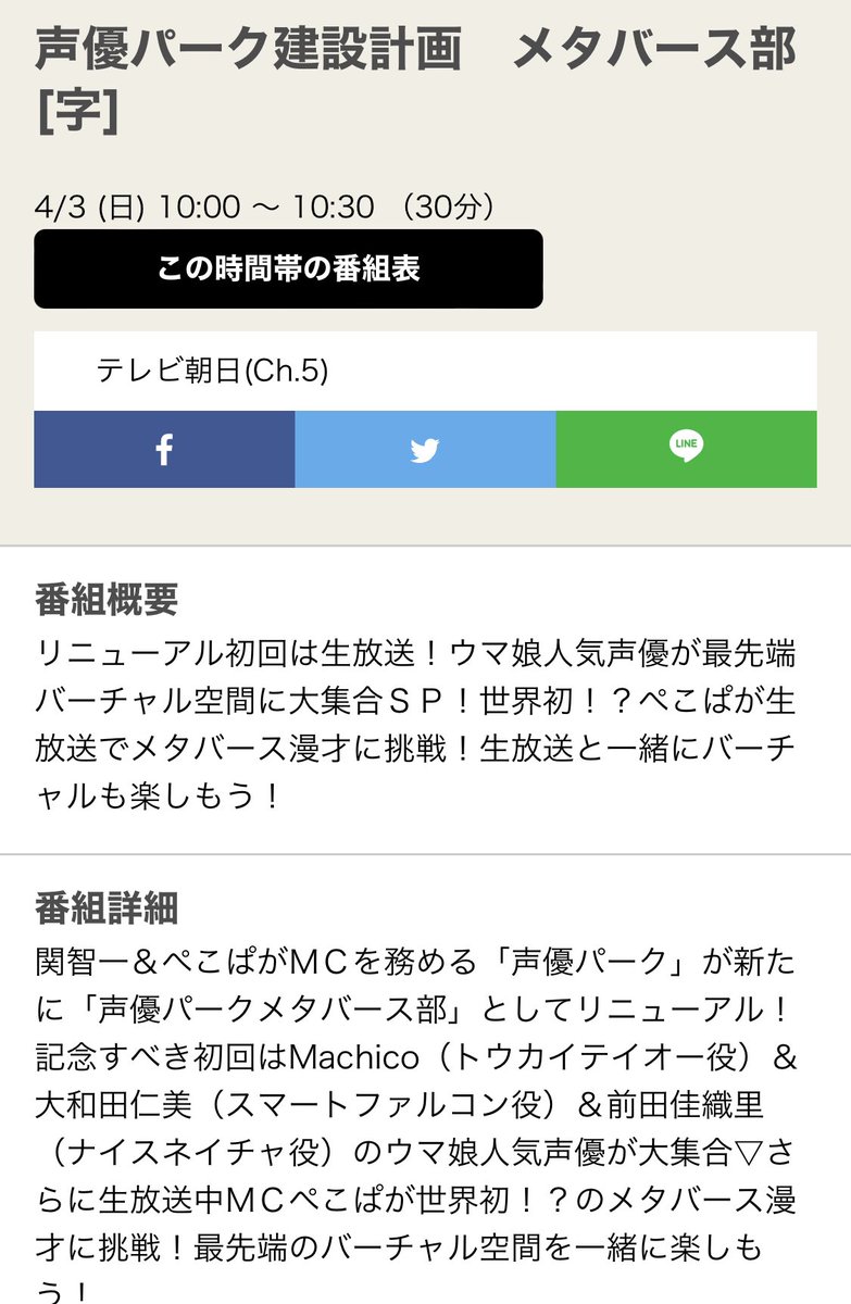 ●予約追加:テレビ朝日 2022/4/3 10:0 ~ 10:30 声優パーク建設計画 メタバース部[字]