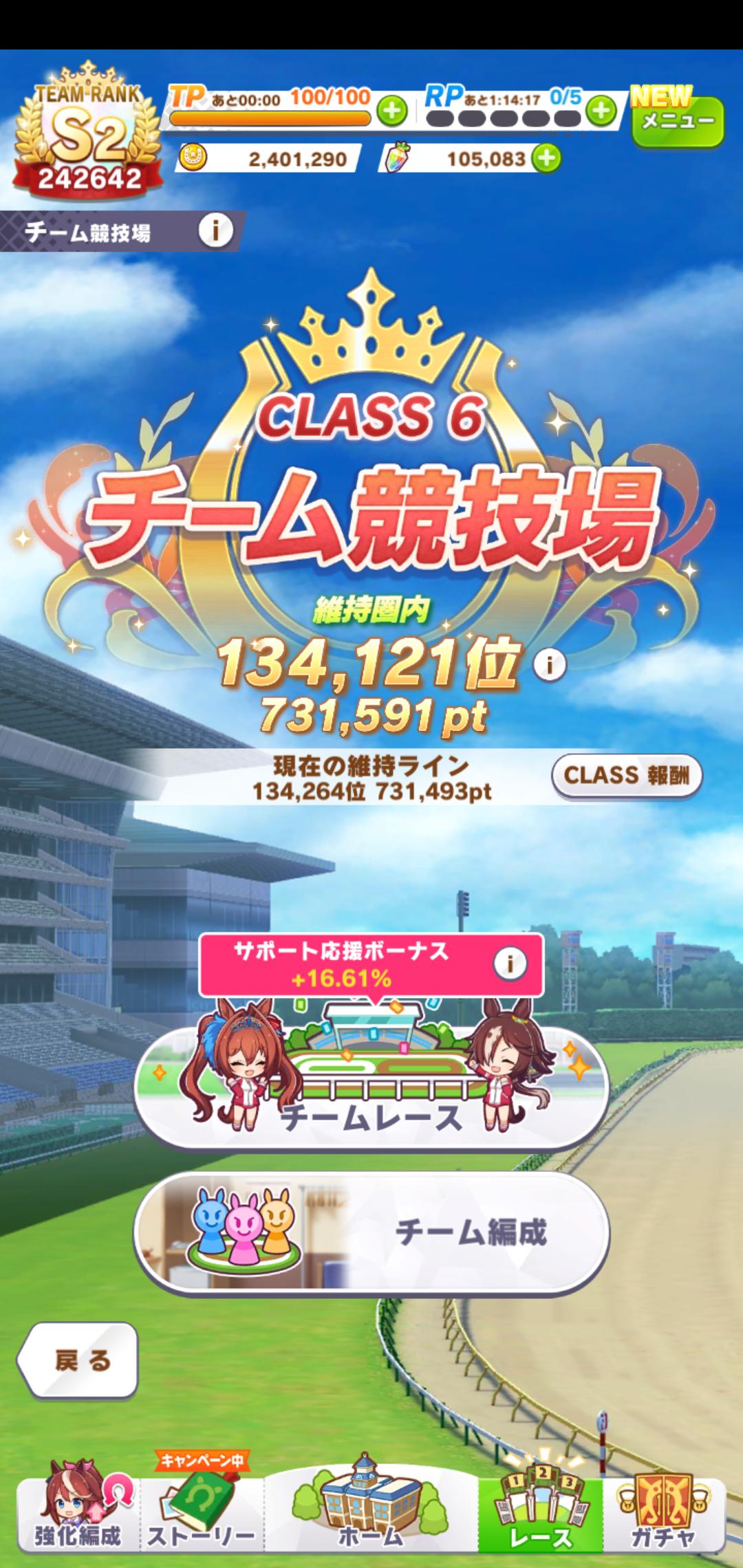 配布サポカだけでもS+までは難しくない、SS以上となると強力なサポカを自前で持ってないと厳しい、ただS+まで育てられるんならチャンミも十分戦える、多分無微は今が一番楽しいんじゃないか次のシナリオが来たら知らんけど