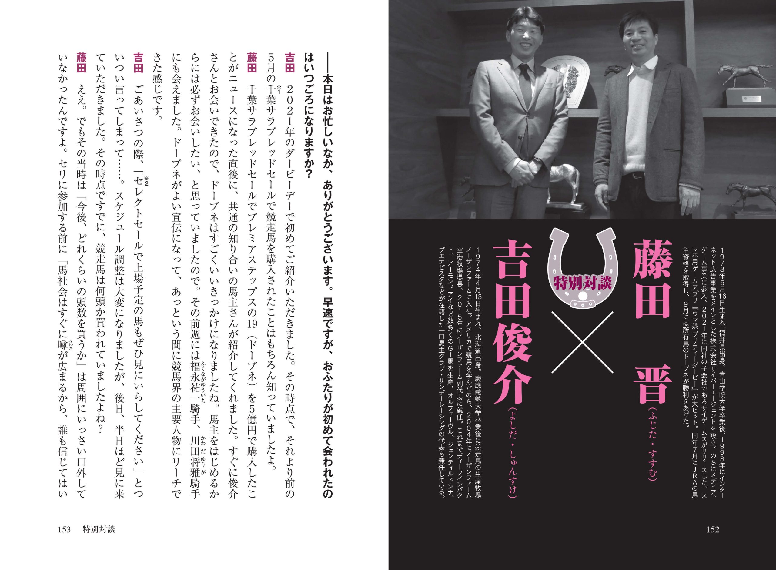 藤田晋氏と吉田俊介氏(サンデーレーシング代表取締役)の対談。