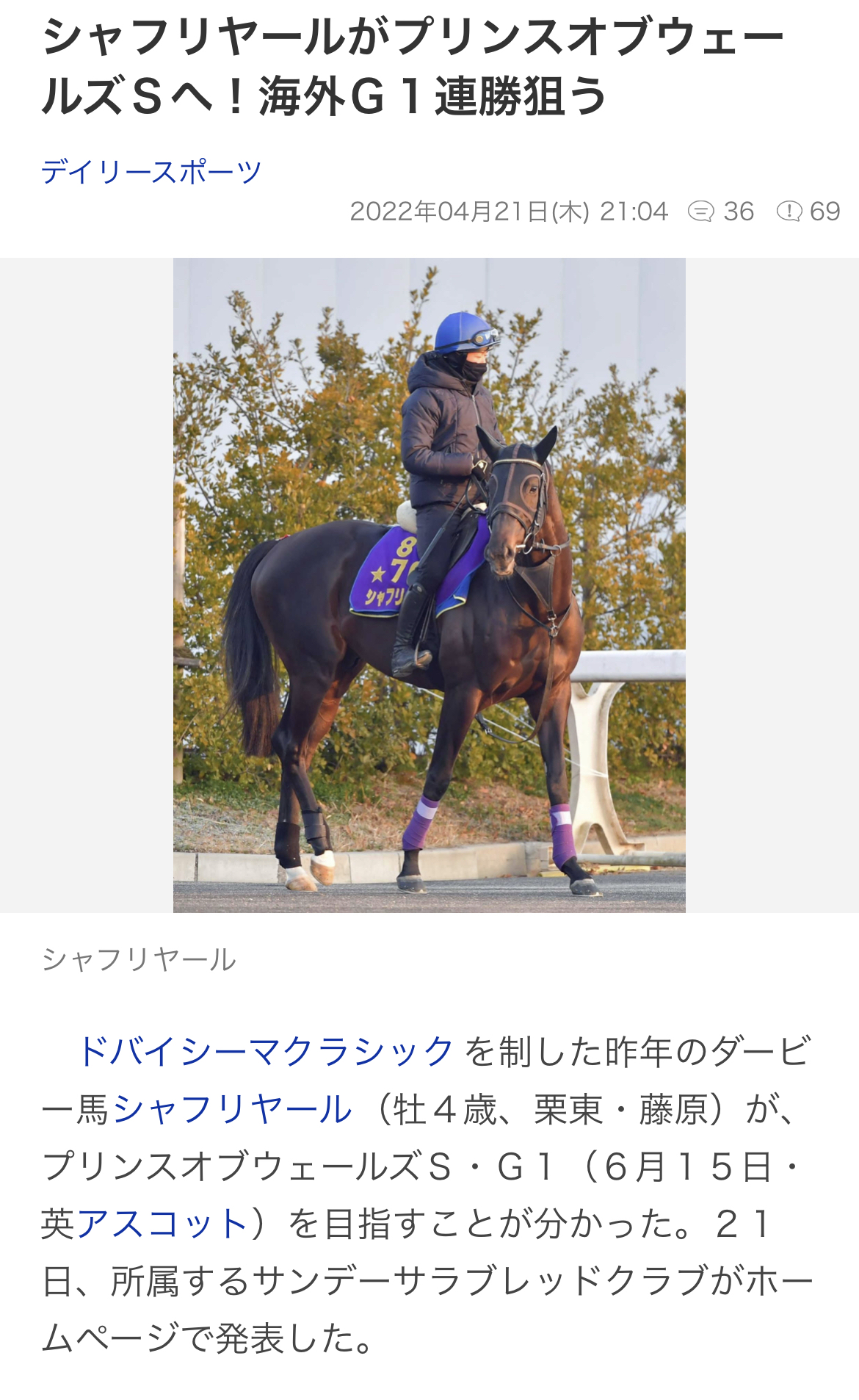 シャフくん、宝塚じゃなくてイギリスのプリンスオブウェールズS行くってさ