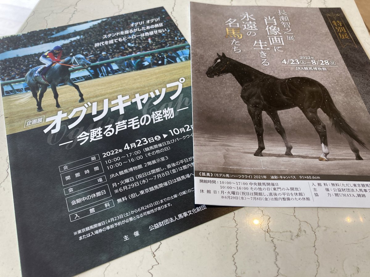 今JRA博物館でオグリキャップの企画展やってて、オグリのクリアファイルやポストカードもあったよ