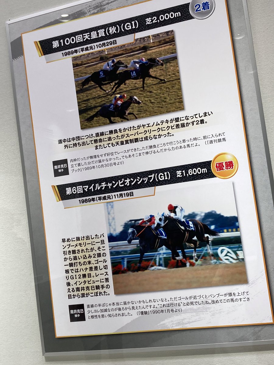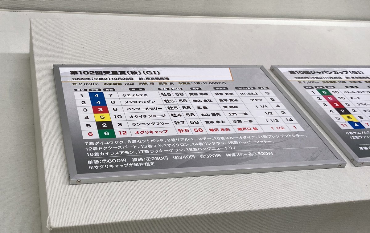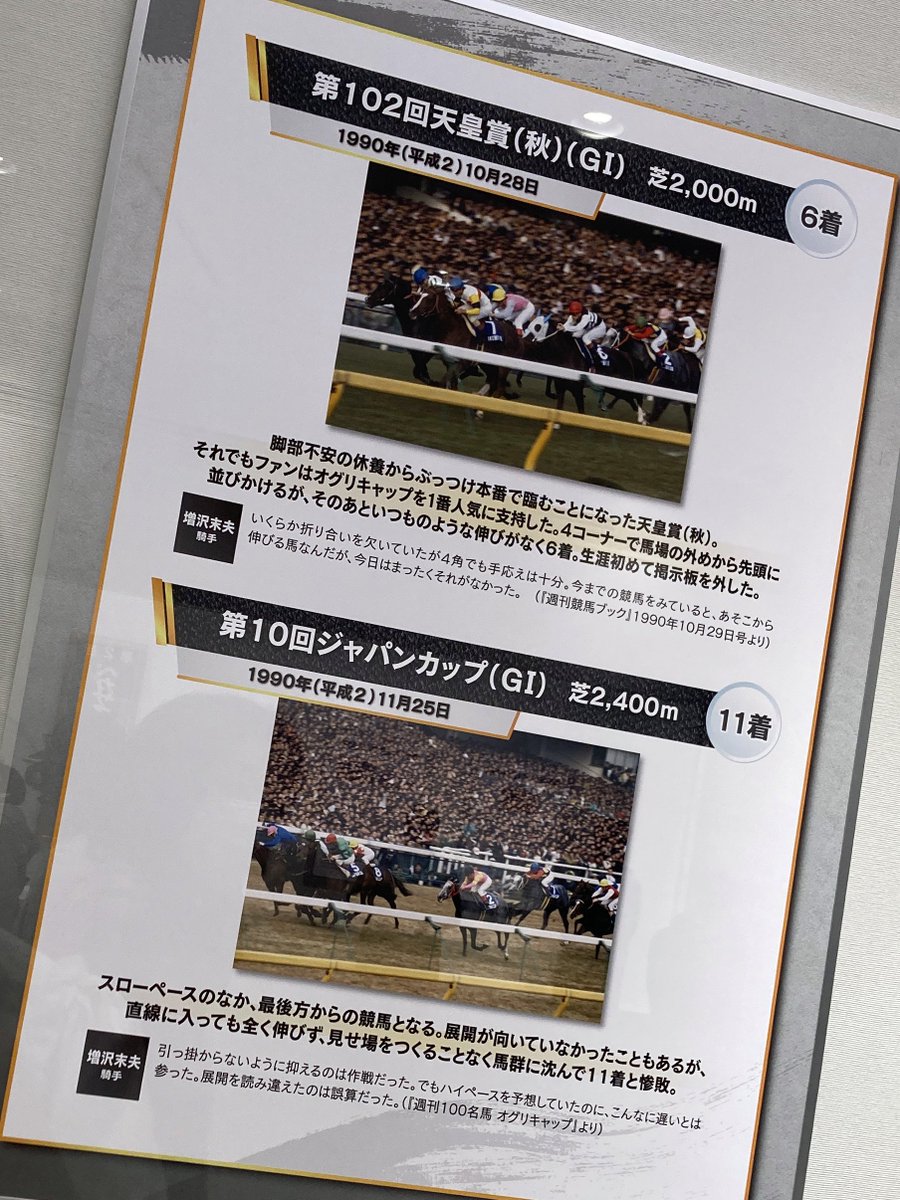 東京競馬場の競馬博物館でオグリキャップの企画展があるので拝見しています。なんてカッコいい。