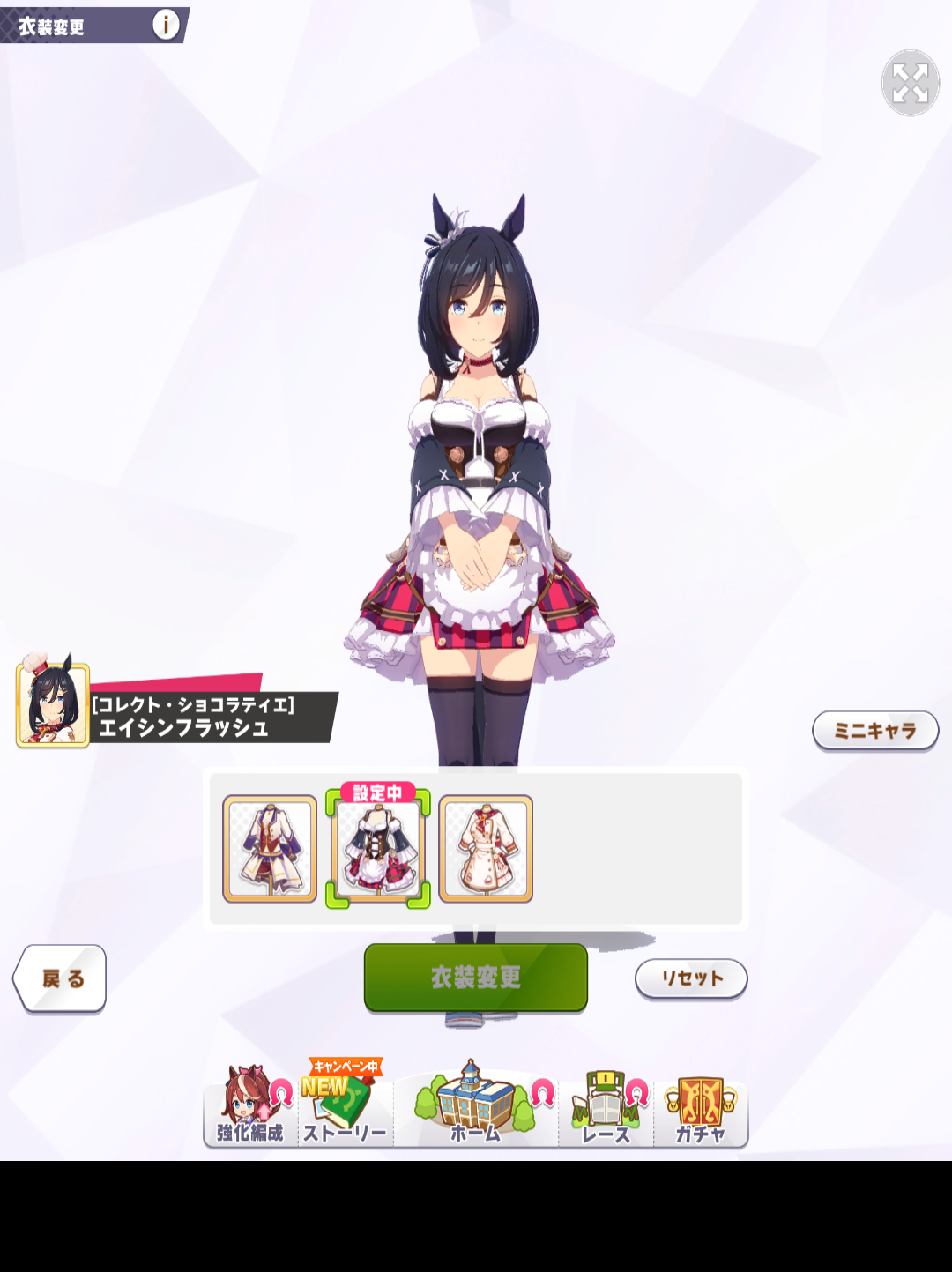 衣装はその育成ウマ娘に対応する殿堂入りウマ娘も含めて変更され、育成やレースなどのシーンに反映されます。