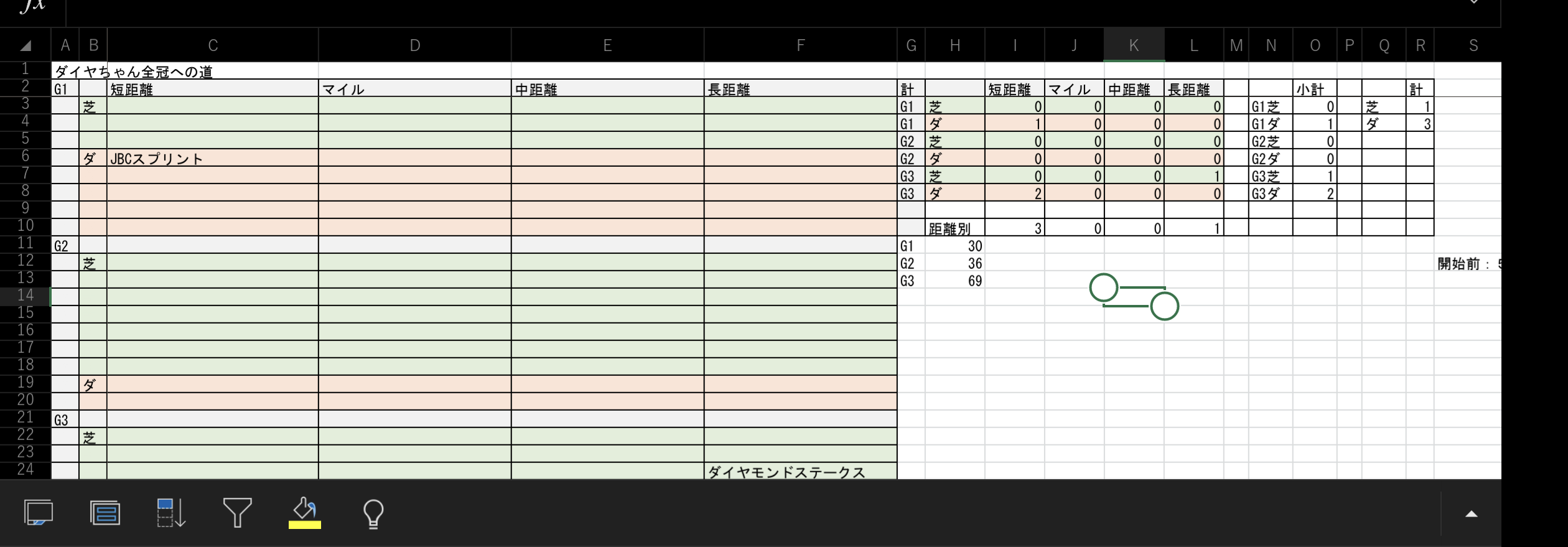 ②距離バ場ごとに因子を組んでトロフィー回収して適宜エクセルを更新します🤗