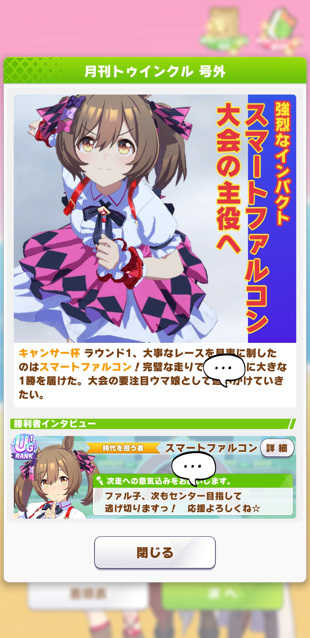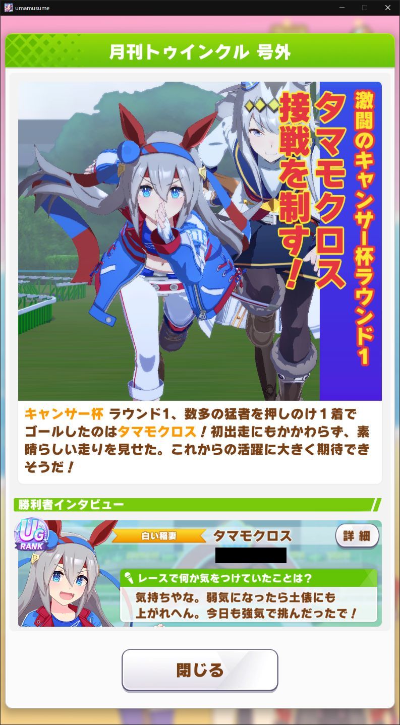 俺の栗オグリ、地固め、巧みなステップ、集中力積んでるから寧ろウェルカム