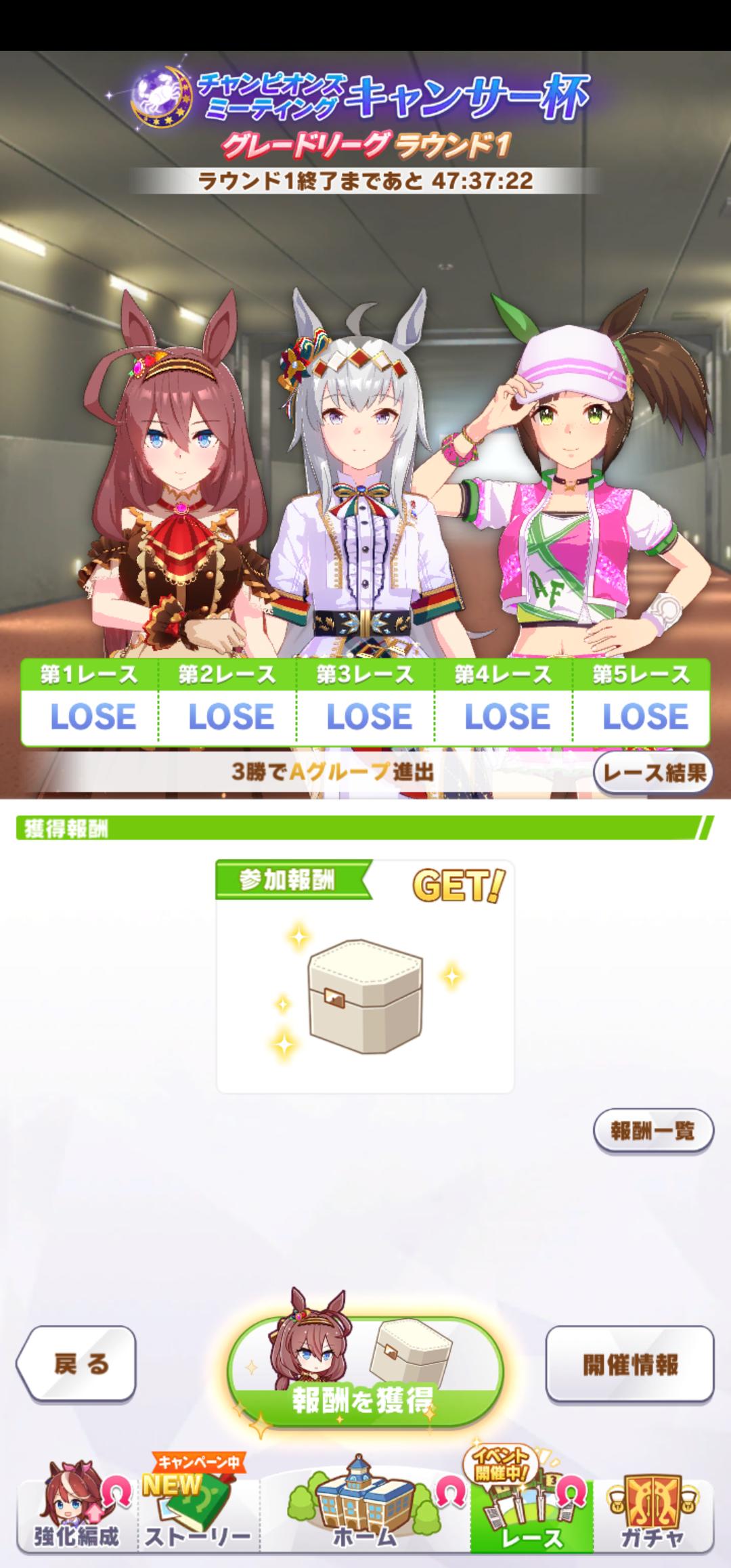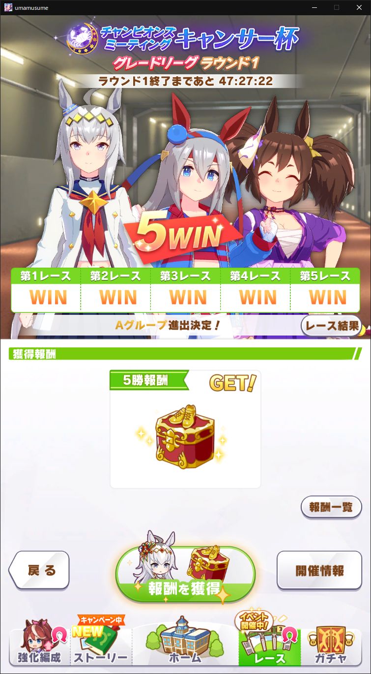 この時間も思ったより緩いぞ、ウマガ〇ジとは一回しか当たらなかった