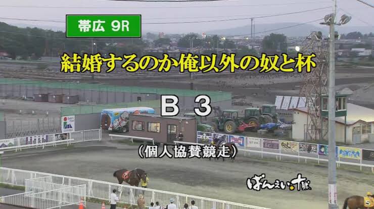 スポンサーリンク スポンサーリンク スポンサーリンク 【競馬】ばんえい競馬の協賛レース『もういい。俺が走る。』www 競馬・競走馬 X LINE コメント 2022.07.19競馬・競走馬スポンサーリンク スポンサーリンク スポンサーリンク 今日の謎協賛協賛メッセージによると、「競馬が好き。でも、馬券で勝つより負けるほうが多い。だったら、自分が走る方がいいかと・・・」シンプルすぎるwww#ばんえい競馬 pic.twitter.com/GQl7Knccx1— ひがちゃん@競馬(特に地方・ばんえい競馬)多め (@JinktamonOH) July 18, 2022 https://www2.keiba.go.jp/KeibaWeb/TodayRaceInfo/RaceMarkTable?k_raceDate=2022%2f07%2f18&k_raceNo=4&k_babaCode=3ツイッター民の反応@imaich_39: 無音楽無妻 2022-07-18 22:09@JinktamonOH @sponichi_baTAI pic.twitter.com/U5i6etLf2n 返信 リツイ お気に@yukinem10: マツザキユキ|7/13〜よっかいちペンギンバザール 2022-07-18 16:10@JinktamonOH こういうの好きよ😂 返信 リツイ お気に@J4tU2c99JVMh68r: さきやもも 2022-07-18 19:29@JinktamonOH わかるなぁ、私も『鳴かぬなら私が歌おう不如帰』な人間だから 返信 リツイ お気に@B8ucjWvDRgW6Srj: じんぽありさ 2022-07-18 19:29@JinktamonOH これ以上ない協賛レース名。賞をあげてほしい。 返信 リツイ お気に@kamisiroyukari: 雪月花 2022-07-18 19:40@JinktamonOH お馬さんの斤量背負う騎手の鑑 返信 リツイ お気に@sstsw3104: 天剣/KNRChaN 2022-07-18 21:11@JinktamonOH 自意識高い2歳だなぁ( ꒪⌓꒪) 返信 リツイ お気に@gr_starneon: 聖良紅牙@໒꒱タ統逆ドラ&ガ最決参戦必ず(勝ち)ホシを挙げる 2022-07-18 21:53@JinktamonOH 協賛主、そりの重さに絶望するなよ…www 返信 リツイ お気に@UEP183800: ウエP 2022-07-18 22:02@JinktamonOH ハリボテエレジー誕生秘話 返信 リツイ お気に@0319mK0705: 桃華 2022-07-18 22:15@JinktamonOH 笠松でも、(いくらからだったかな🤔)やってましたね。まさか、それはなかったような🤣 返信 リツイ お気に@harima1330057: 山崎 美鶴 2022-07-18 23:11@JinktamonOH @Mimomimo_mimosa こういうセンス大好きです♪ 返信 リツイ お気にスポンサーリンク ばんえいは面白い協賛多いよね