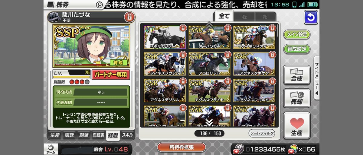 スタポケ起動してきたけどたづなさんSSPだから調教パートナー株券やな