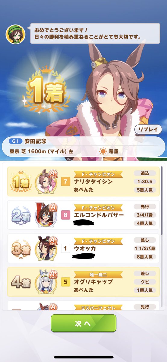 藤木くんの固有1位でも発動するみたいだし、逃げ育成にして誰かに追いすがって貰えれば、前の逃げウマをぶち抜けそうな気がするんだよなぁ……。