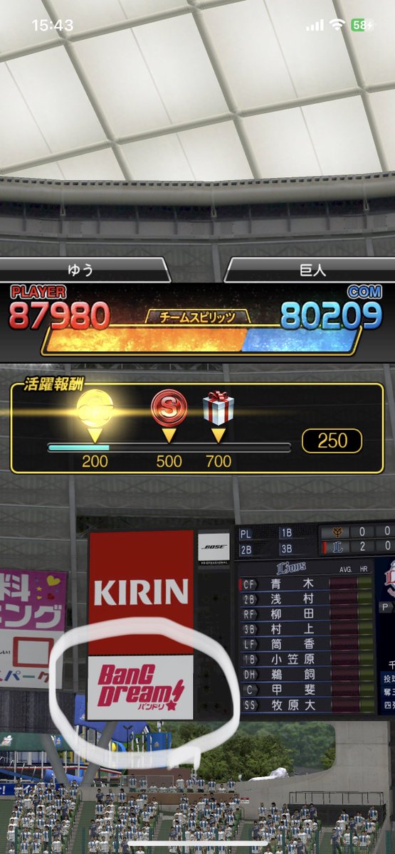 東京ドーム内のウマ娘の広告を見るためにプロスピやろうかな