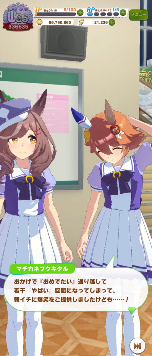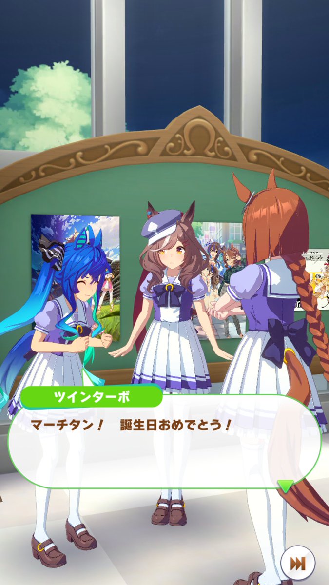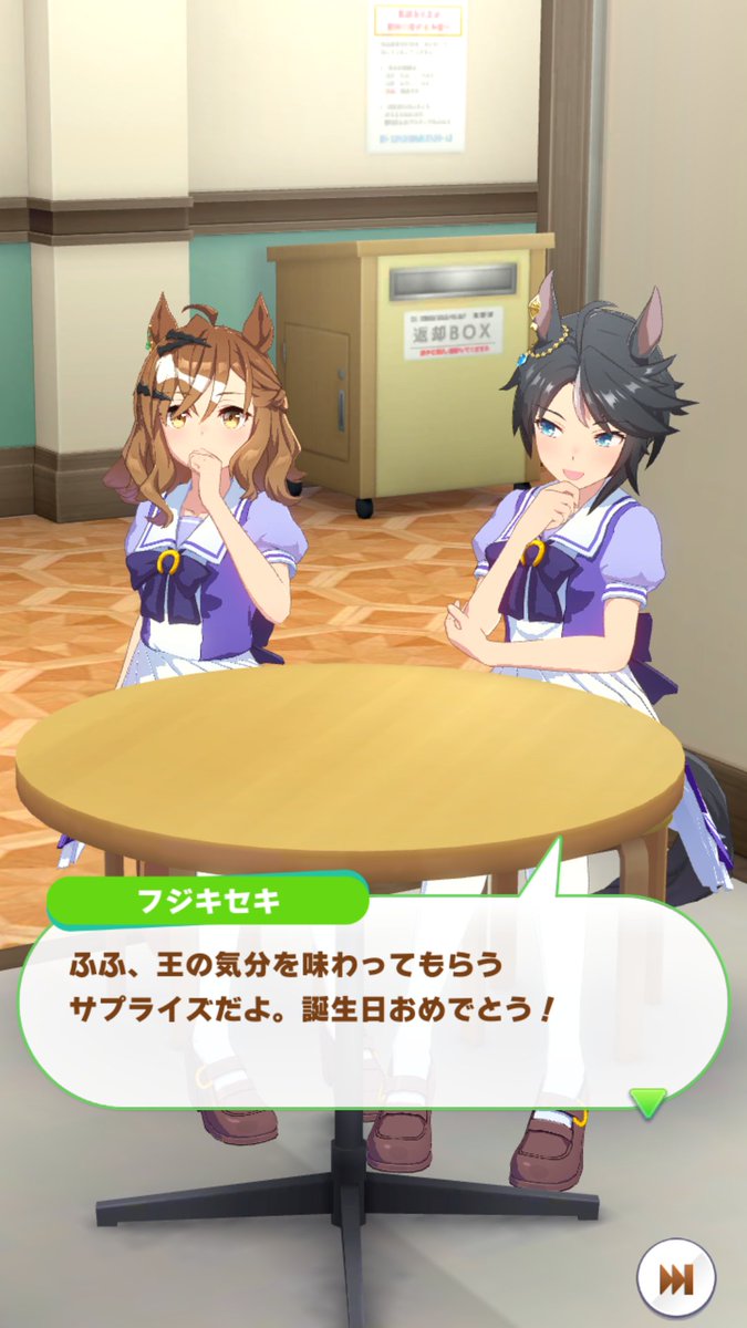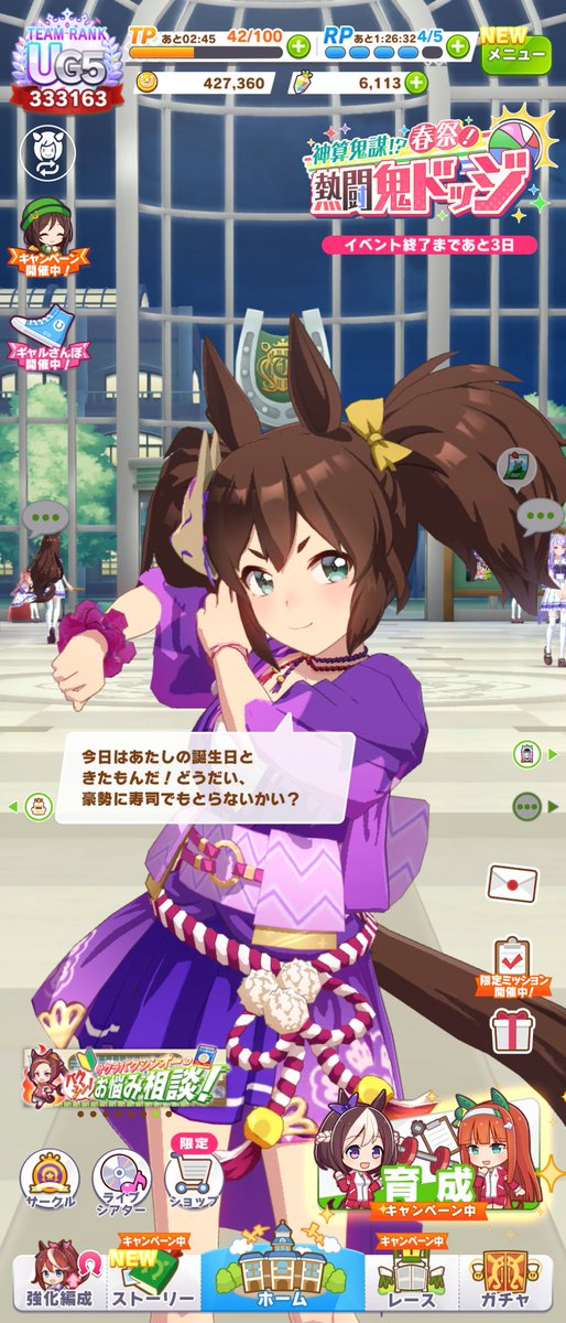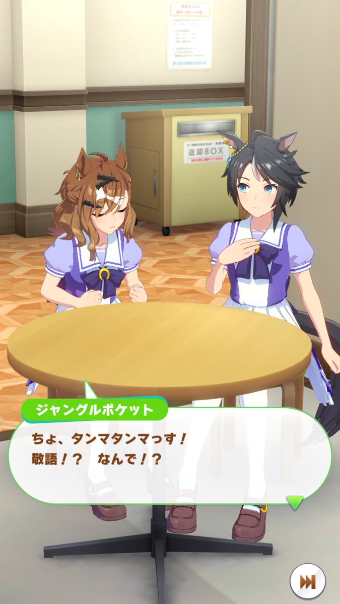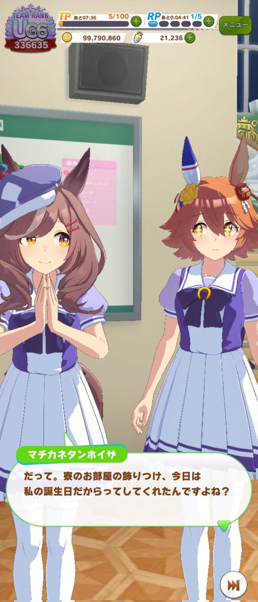 ジャングルポケットの誕生日ホーム画面、やっぱりタキオンとカフェでしたね。