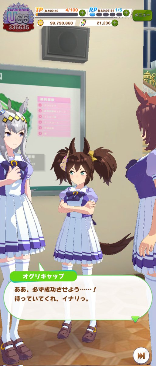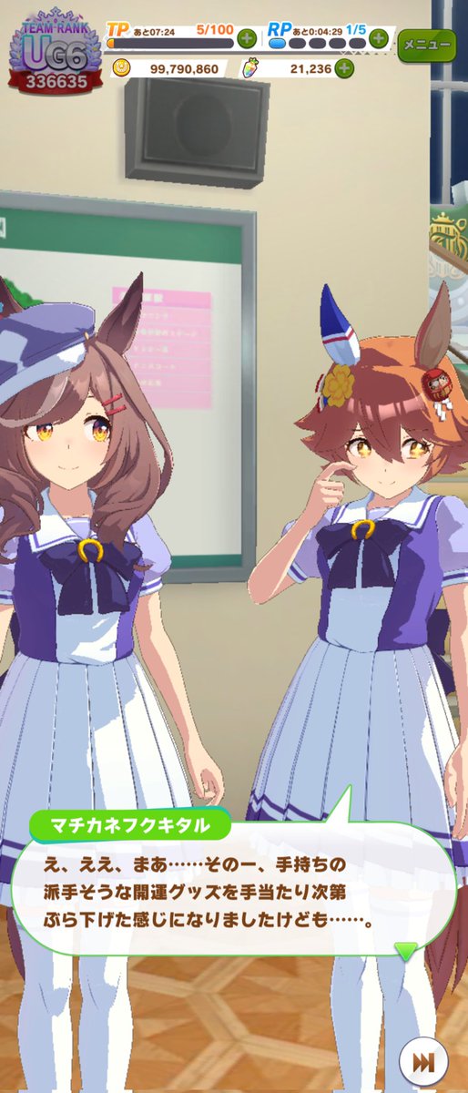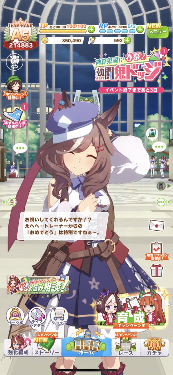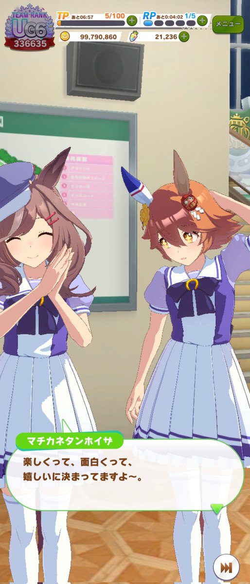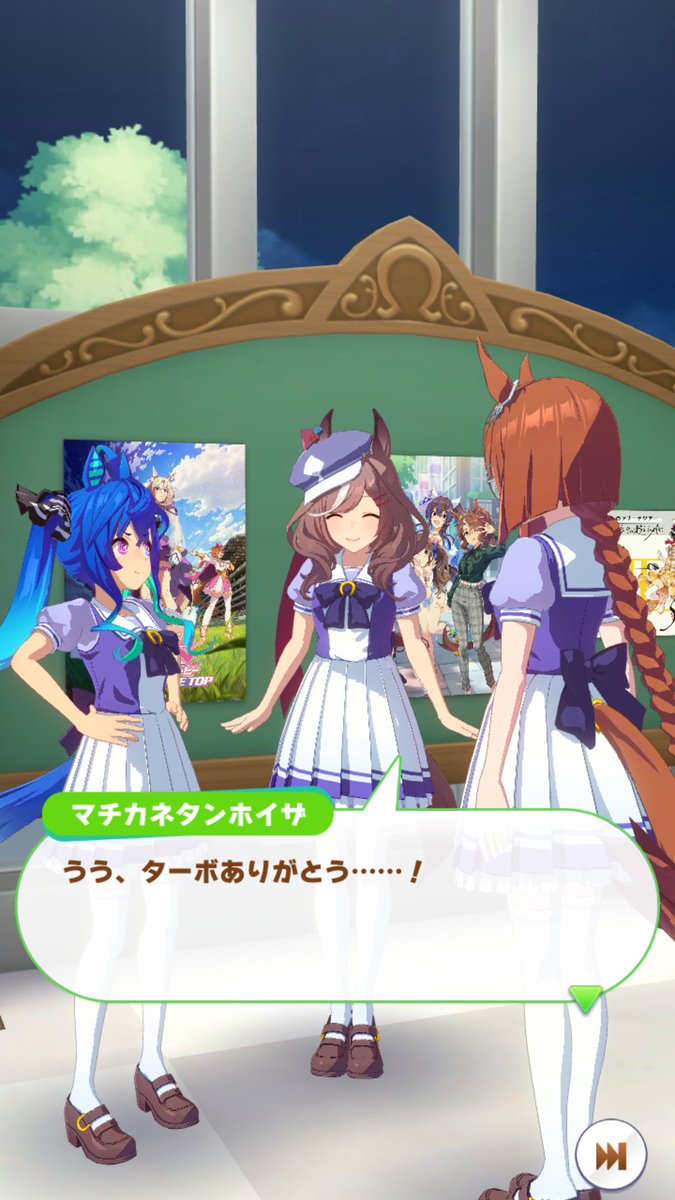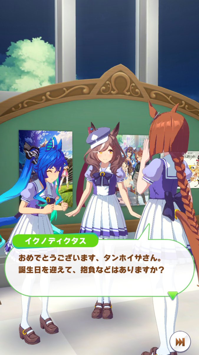 ジャングルポケットの誕生日ホーム画面、やっぱりタキオンとカフェでしたね。