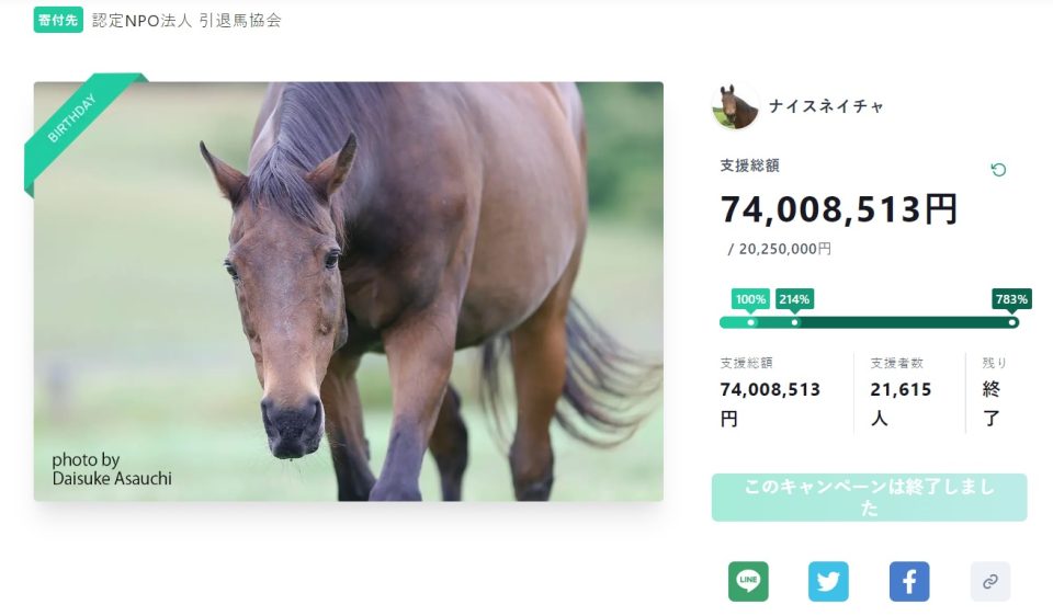 去年の時点で引退馬協会の人が「正直今年は去年より額は下がると思ってた」とか言ってたのに