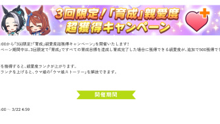ウマ娘ニュース【ウマ娘】3/14よりホワイトデーキャンペーン!親愛度500のやつもくるぞ! 覚醒レベル解放ってやっぱこれかな?