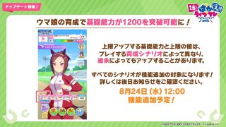 ウマ娘ニュース【ウマ娘】『因子再獲得』やステータスが1200を突破可能になる機能などが8月24日に実装予定