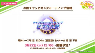チャンピオンズミーティング【ウマ娘】ピスケス杯の必要スタミナ、かなり高くなりそう