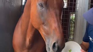 競馬・競走馬Myどんぶりでニンジン爆食いするブラストワンピースかわいい