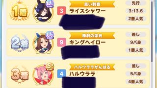 チャンピオンズミーティング【ウマ娘】「推しで123とれた」ライス、キング、ウララで123フィニッシュを決めるトレーナー登場【ピスケス杯】