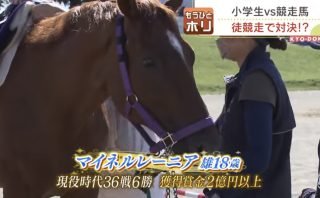 競馬・競走馬 小学生と元競走馬が50メートル走で対決!楽しそうでいいな!