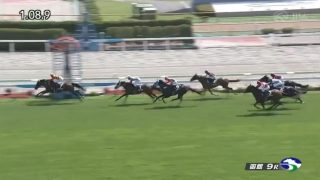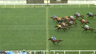 競馬・競走馬 【競馬】ゴール版の影にびっくりしてジャンプするハギノモーリスくん